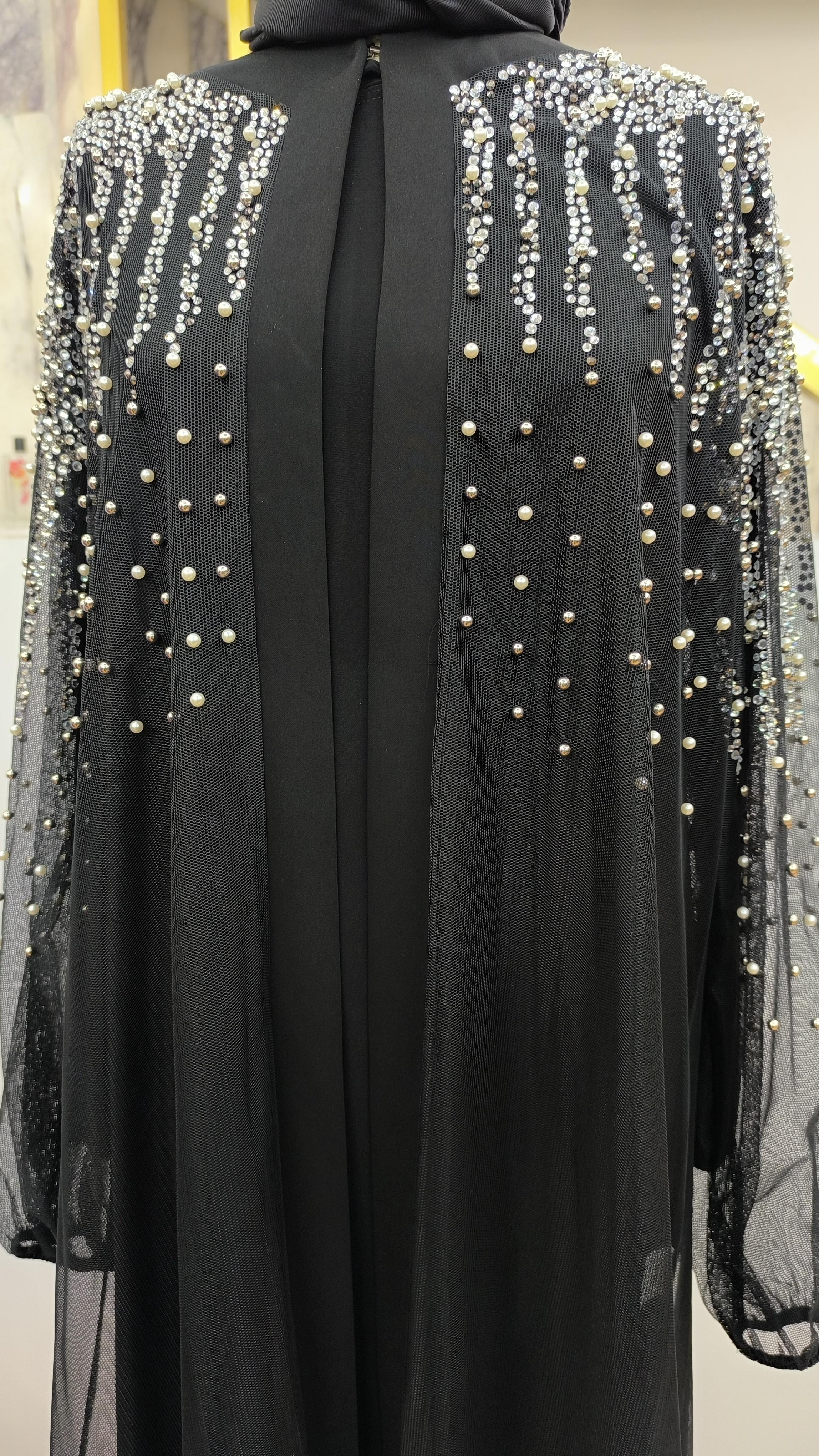 Önü ve arkası omzundan inci ve taş detaylı